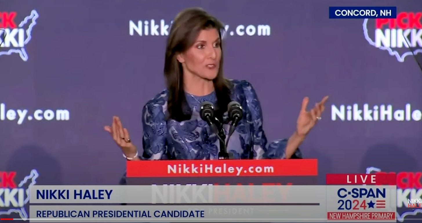Enter Nikki Haley’s announcement that she will continue her campaign after coming in second place in New Hampshire. The results of New Hampshire show she doesn’t have a chance against Trump and the best she can hope for is a strong showing in her home state to garner some kind of position in the next administration if Trump wins. So, it makes sense for her personally to stay in the race, she may even do well enough to have a real shot at being Trump’s VP. The question is, how does this make sense for the deep pocketed, moneyed interest donors supporting her on the kamikaze charge?